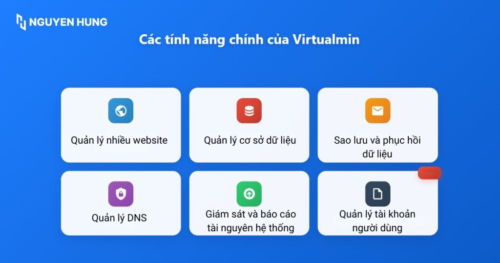Các tính năng này giúp Virtualmin phù hợp cho cá nhân, doanh nghiệp vừa/nhỏ muốn tự chủ quản lý nhiều website, dịch vụ website trên một hoặc nhiều máy chủ Linux một cách linh hoạt, tiết kiệm chi phí.