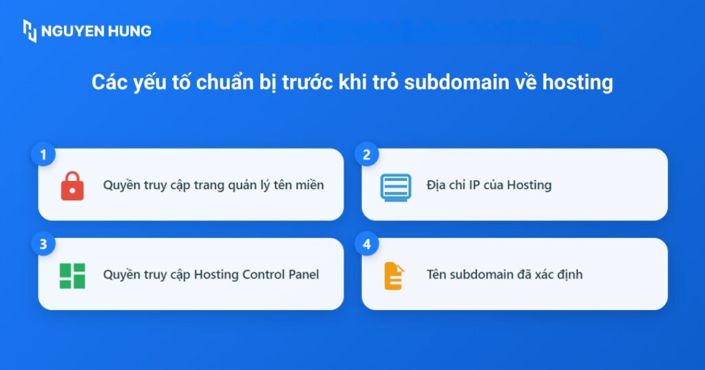 Để chuẩn bị tốt trước khi trỏ subdomain về hosting và đảm bảo quá trình diễn ra suôn sẻ, bạn cần chú ý các thông tin và quyền truy cập sau: