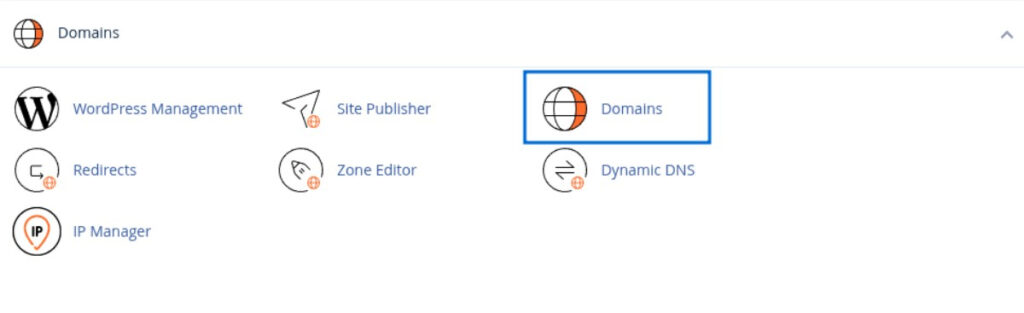Đăng nhập vào cPanel của bạn bằng thông tin do nhà cung cấp hosting cung cấp. Trong giao diện chính, bạn tìm đến khu vực Domains và nhấp vào đó.