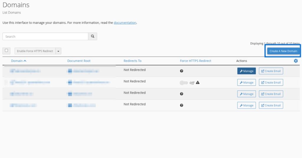 Tiếp đó bạn nhấn vào nút Create A New Domain.