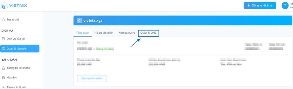 Bản ghi A Record sẽ định hướng subdomain tới đúng IP hosting. Để tạo và cấu hình A Record mới, bạn đăng nhập vào trang quản lý tên miền (nơi bạn mua domain), sau đó tìm đến khu vực quản lý DNS.