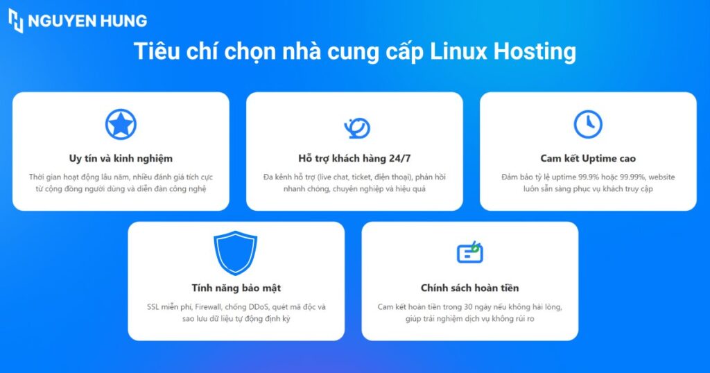 Khi lựa chọn nhà cung cấp Linux Hosting, bạn hãy lưu ý các tiêu chí sau: