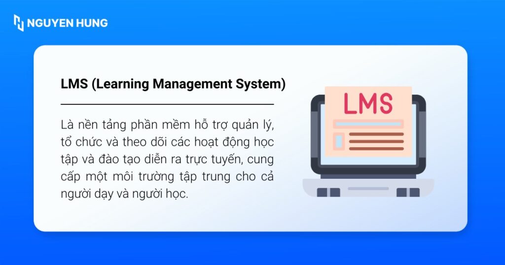 LMS (Learning Management System) là nền tảng phần mềm hỗ trợ quản lý, tổ chức và theo dõi các hoạt động học tập và đào tạo diễn ra trực tuyến, cung cấp một môi trường tập trung cho cả người dạy và người học.