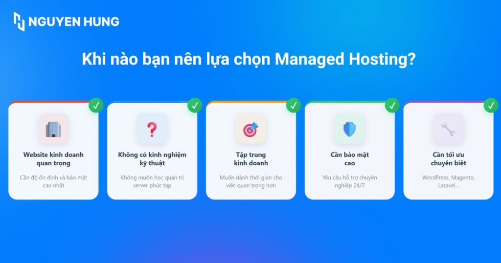Managed Hosting không phải là giải pháp cho tất cả mọi người, nhưng sẽ là lựa chọn tối ưu trong các trường hợp sau: