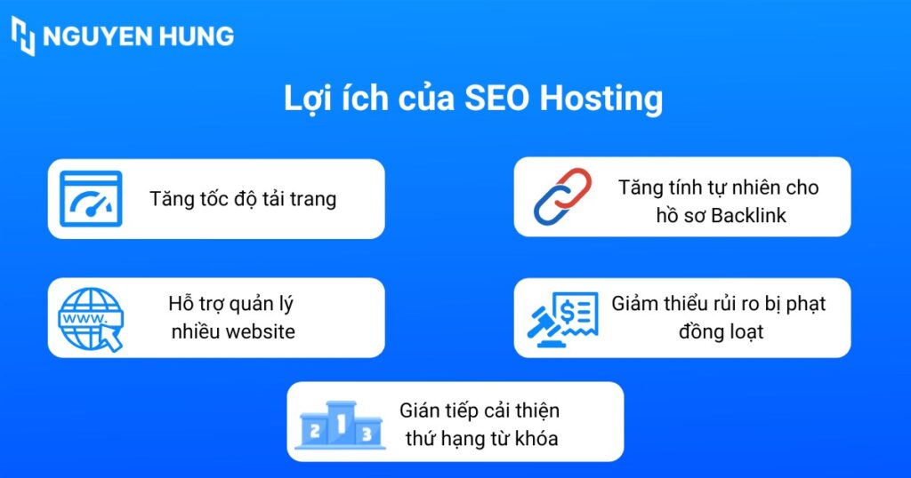 Sử dụng SEO Hosting mang lại nhiều lợi thế đáng kể cho chiến lược SEO, đặc biệt khi bạn cần xây dựng và quản lý một hệ thống website.