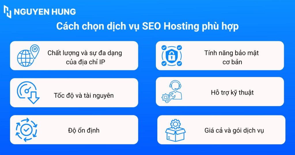 Việc lựa chọn một nhà cung cấp SEO Hosting uy tín và phù hợp là rất quan trọng. Điều này đảm bảo hiệu quả và an toàn cho chiến lược SEO của bạn. Dưới đây là những tiêu chí then chốt cần cân nhắc: