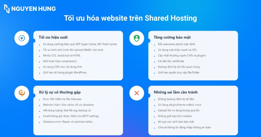 Từ kinh nghiệm của mình, đây là những sai lầm phổ biến mà người dùng Shared Hosting thường mắc phải: