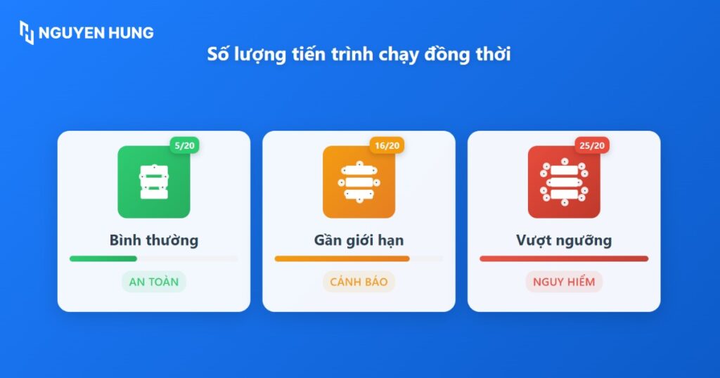 Number of Process là số lượng tiến trình tối đa mà tài khoản hosting của bạn có thể chạy đồng thời trong cùng một thời điểm. Khi số tiến trình vượt ngưỡng cho phép, website có thể gặp lỗi 500 hoặc 503, khiến website của bạn bị gián đoạn và không thể truy cập được.