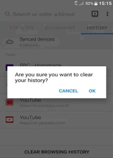 - Tiếp theo, bạn nhấn vào nút Clear Browsing History ở phía dưới màn hình.