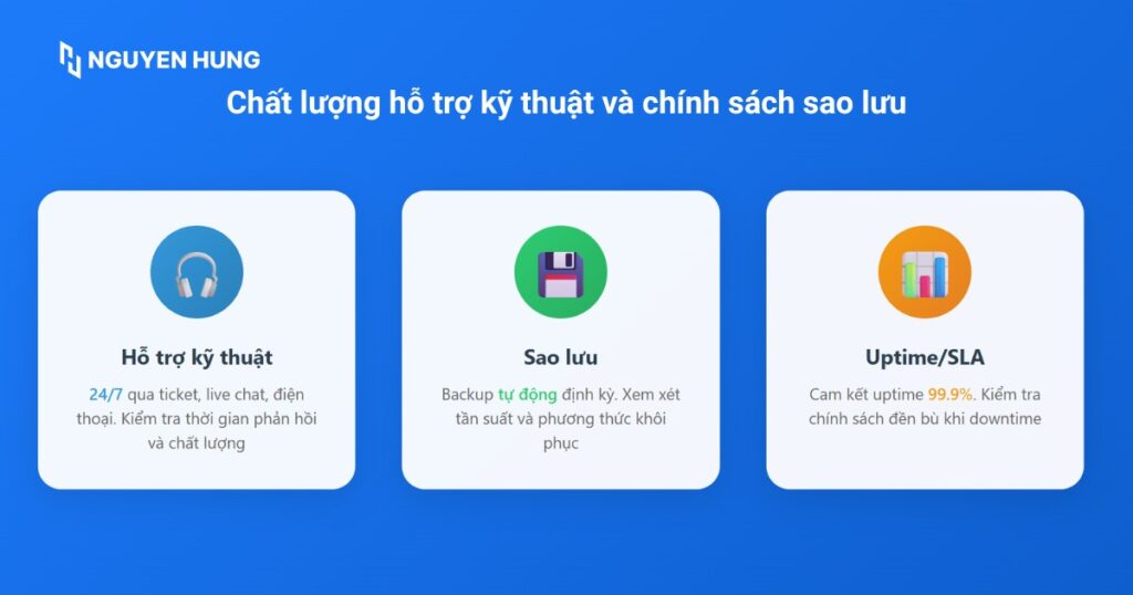 Chất lượng hỗ trợ kỹ thuật và chính sách sao lưu