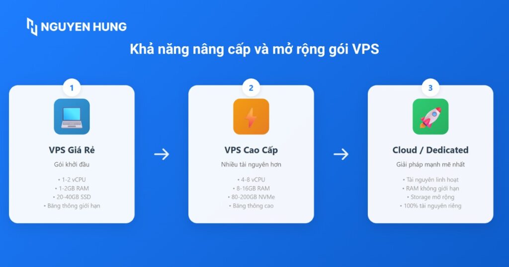 Hãy nghĩ xa hơn một chút. Website của bạn có thể phát triển nhanh hơn dự kiến. Việc chọn một nhà cung cấp có lộ trình nâng cấp rõ ràng và dễ dàng sẽ giúp bạn đỡ đau đầu sau này.