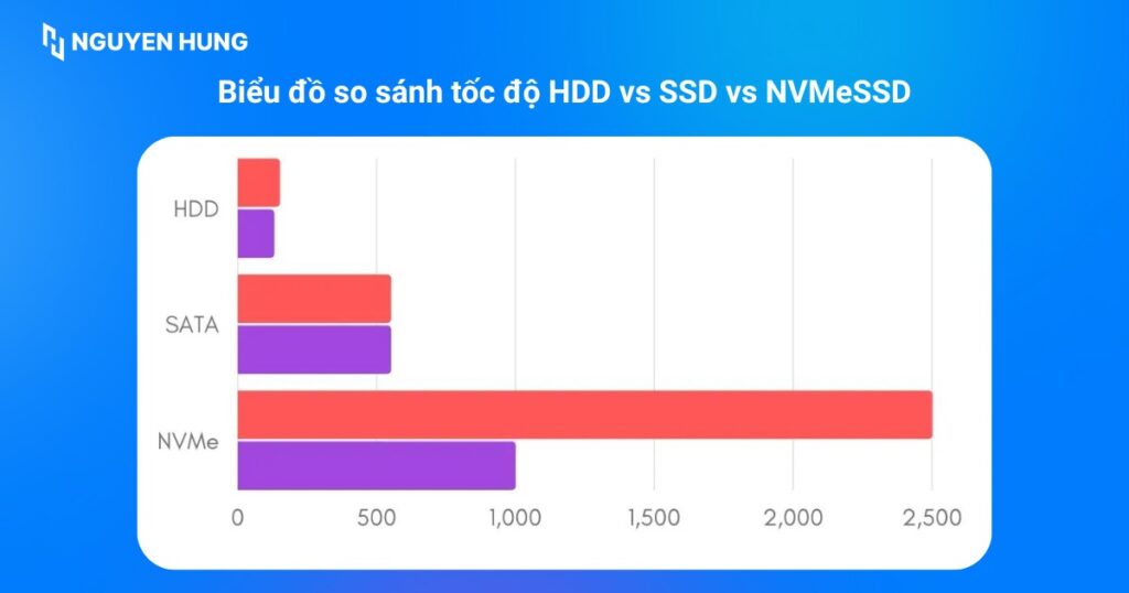 - Loại ổ cứng: SSD (SATA, NVMe) hay HDD? Ưu tiên tuyệt đối SSD, đặc biệt là NVMe SSD cho tốc độ vượt trội.