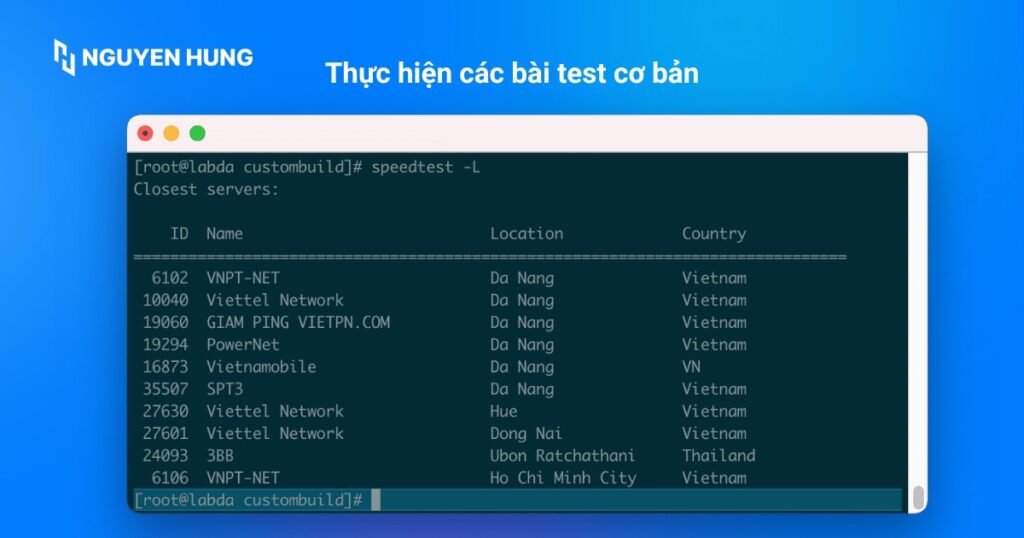 . - Ngoài ra, bạn có thể dùng các lệnh đơn giản khác để kiểm tra băng thông server.