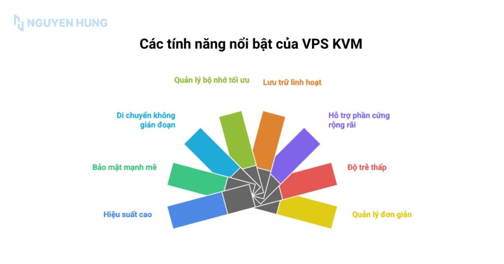 VPS KVM mang đến nhiều tính năng mạnh mẽ giúp tối ưu hiệu suất, bảo mật và khả năng vận hành linh hoạt cho hệ thống. Dưới đây là những điểm nổi bật đáng chú ý: