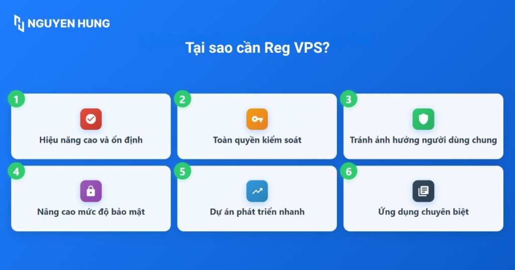 - Tại sao cần Reg VPS: VPS là lựa chọn cần thiết cho các website có lưu lượng truy cập lớn, yêu cầu bảo mật cao, hoặc cần chạy các ứng dụng chuyên biệt.