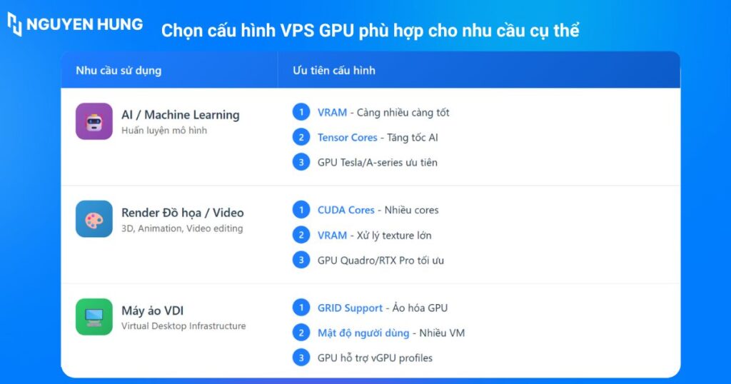 Chọn cấu hình VPS GPU phù hợp cho nhu cầu cụ thể