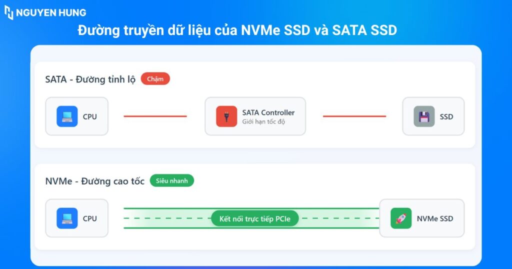 So sánh sự khác biệt giữa NVMe và SSD (SATA/SAS)